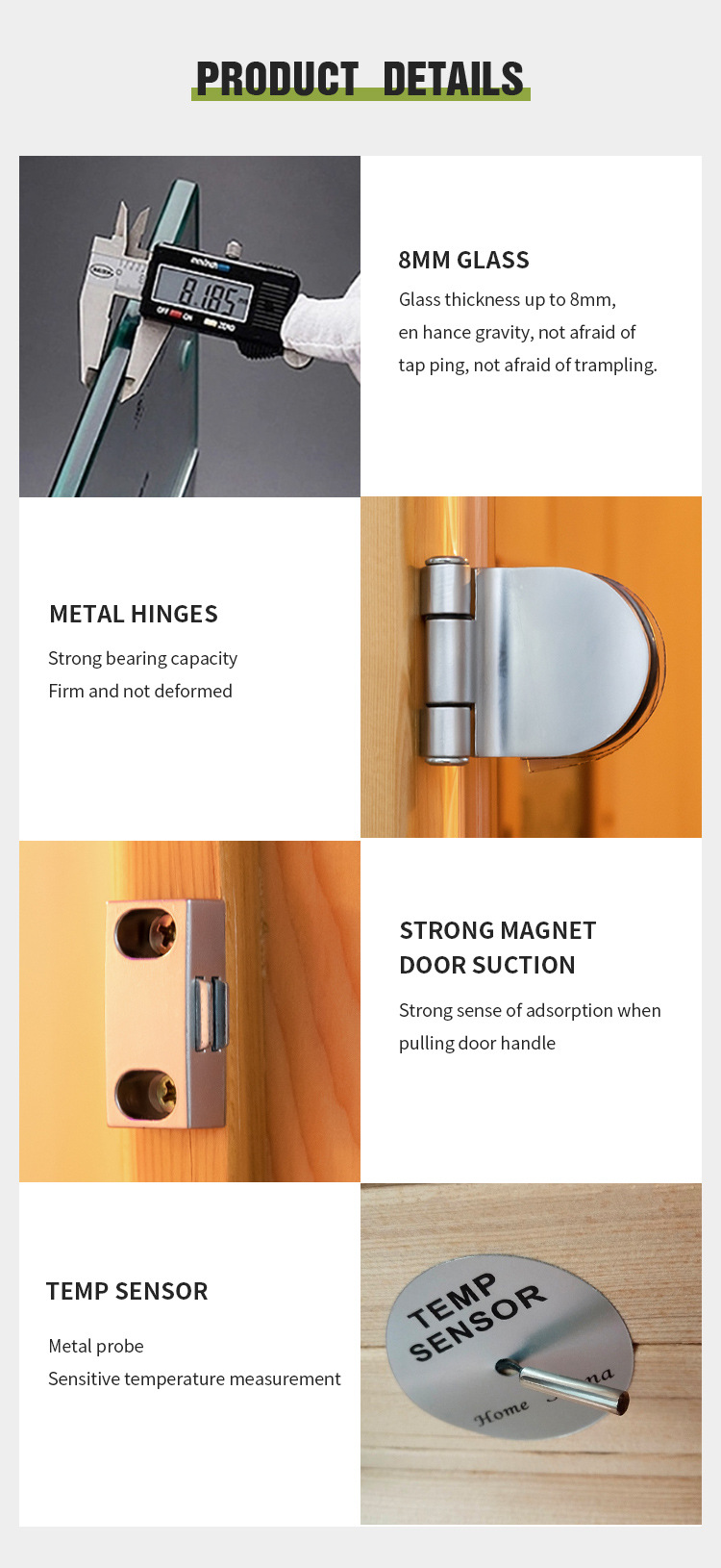 Sensitiva Temp Sensor: 1-3 homo lignum Infrared et Steam Sauna Cubiculum instructum est cum specillo metallico temp sensoris, quod efficit sensitivum temperaturae mensurae. Semper semitam servare potes et temperiem commodam experientiae saunae compone.