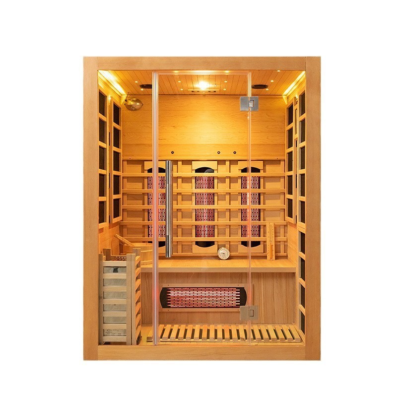 Lignum 1-3 persona infrared et vapor Sauna Room refertum provectis notis ad augendam tuam sanitatem iter: Calentium infrared & Far - Graphene calefactio laminis infrared (praebet etiam efficientem calefactionem pro sudore profundo, remisso); Oxygen Ionizer (aerem intra sauna purificat, atmosphaeram novam et vegetantem creans); Lectio Lux & Orator (permittit te legere vel audire musicam dum sessione tua sauna fruens); Imperium Panel (facilem adaptationem temperaturae, temporis et aliorum occasus efficit experientiam personalem); Sauna Stove & Lumen Undo Tube (concurrunt ad generandum vaporem et calorem infrarubrum, occurrens utrique vapori et longe - sauna amantium ultrarubrum).