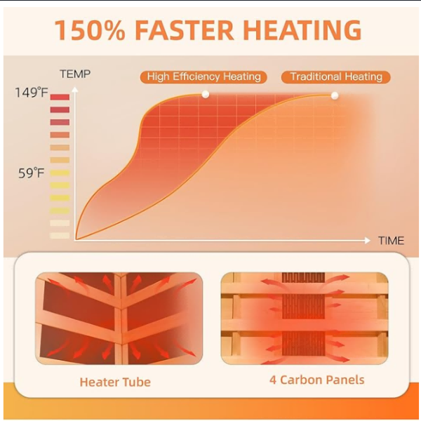 【Efficientem calefacientem technology】 equipped cum IV ipsum tabulata et I ipsum tubo, nostri I hominem infrared sauna praebet CCCLX-gradu Circumding calefacit, cursus etiam calor distribution. De more calefacit in iustus 10-15 minuta, permittens vos ut fruar vestri sauna experientia sine mora.
