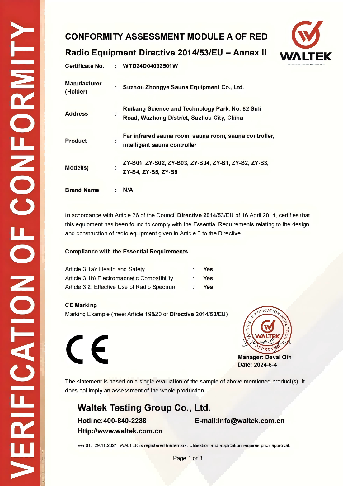 I PERSON Longrared SAUNA--- Product Qualification