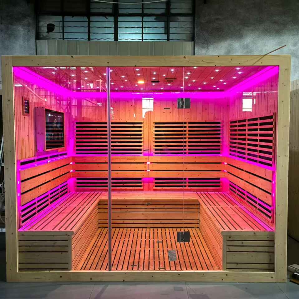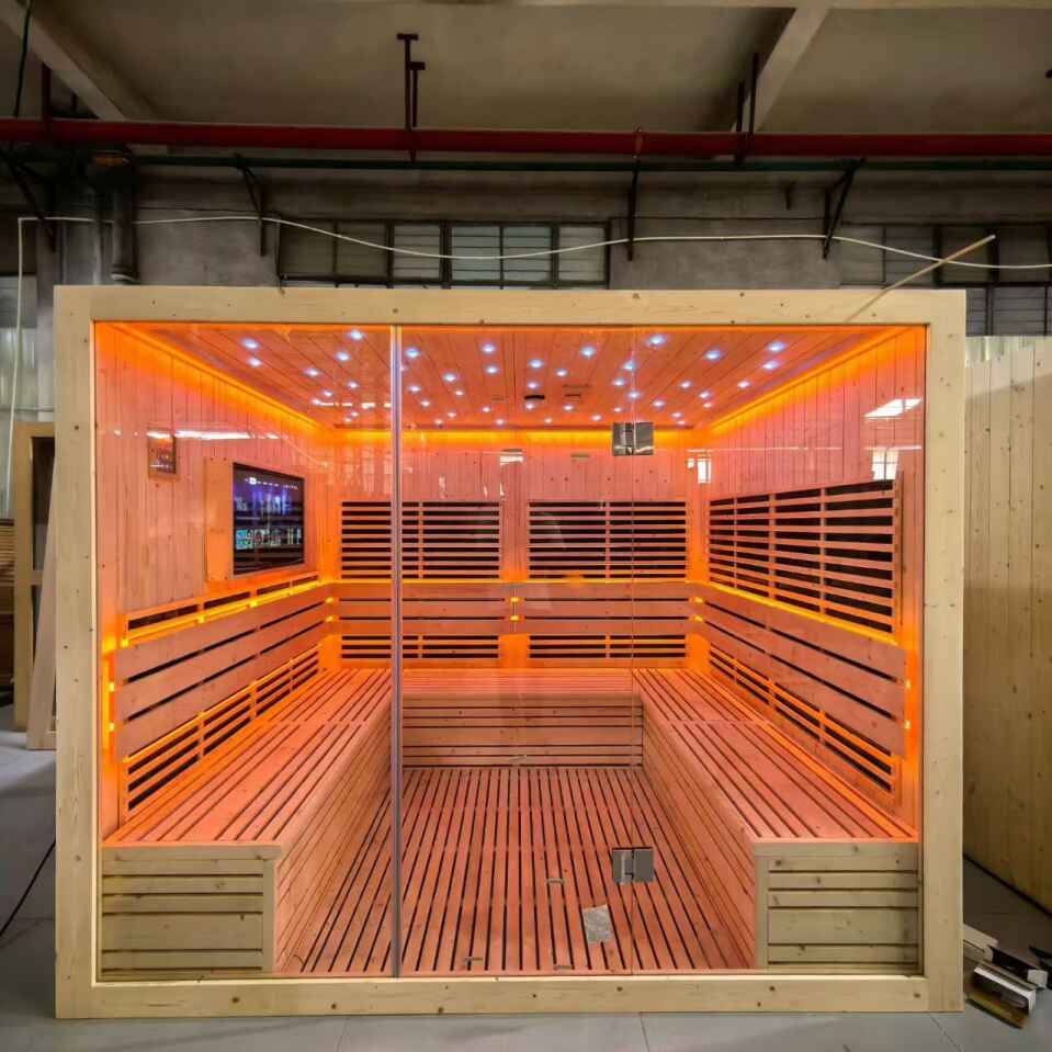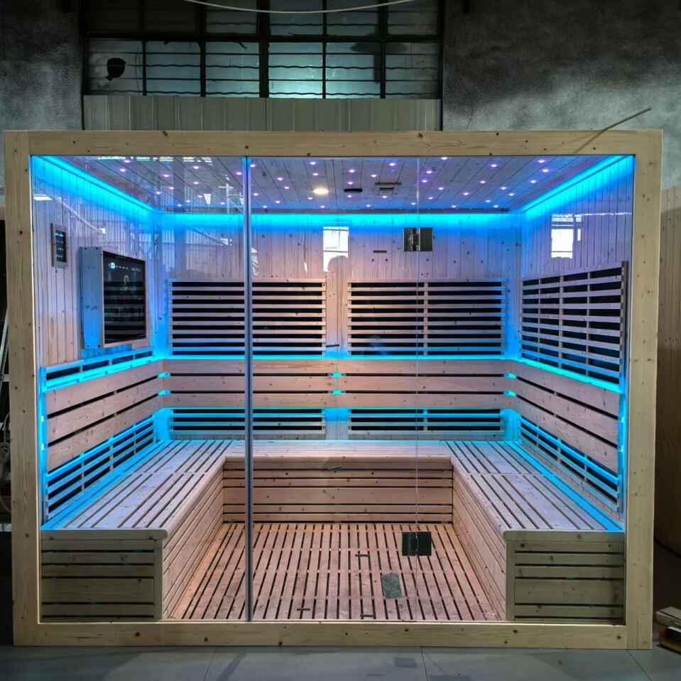 Machinatum pro 5-10 usoribus, hoc sauna cella specimen est ad collectiones familiarum, amicae congregationes, vel parva spatia commerciales sicut spasticas et centra sanitatem. Sauna cum ligno GENERALI constructa, firmitatem efficit dum naturalem, calidam aestheticam ad spatium ferat.