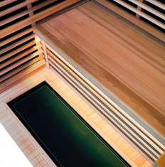 In prospectu sauna ratio eius dual-calefactio est. Elementa calefactionis longe infrascriptae penitus penetrationem perficiunt, calefaciens corpus ab interiore ad promovendum circulationem sanguinis et detoxificationem. Systema calefactionis auxiliaris efficit ut caliditas celeris oritur, permittens sauna ad optatam temperiem brevi tempore pervenire. Haec coniunctio non solum auget efficientiam calefactionis, sed etiam conservat uniformem temperiem distributionem, frigus maculas removens.