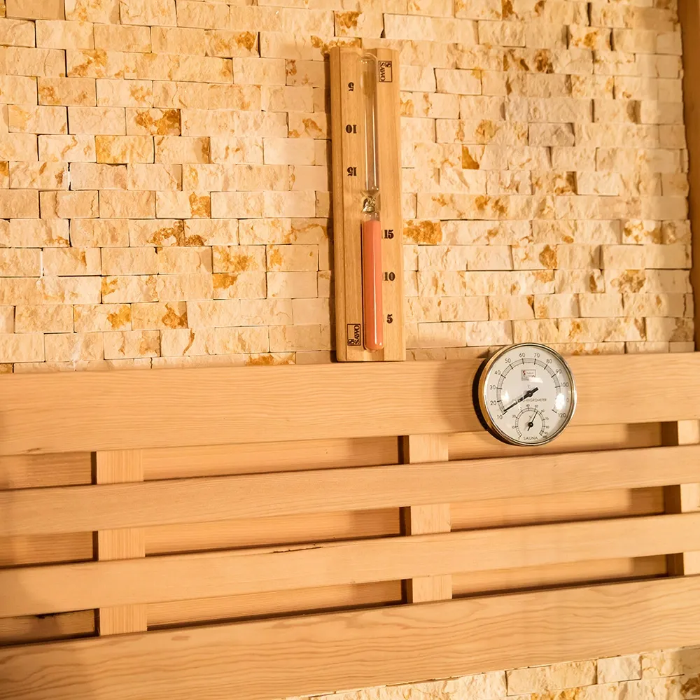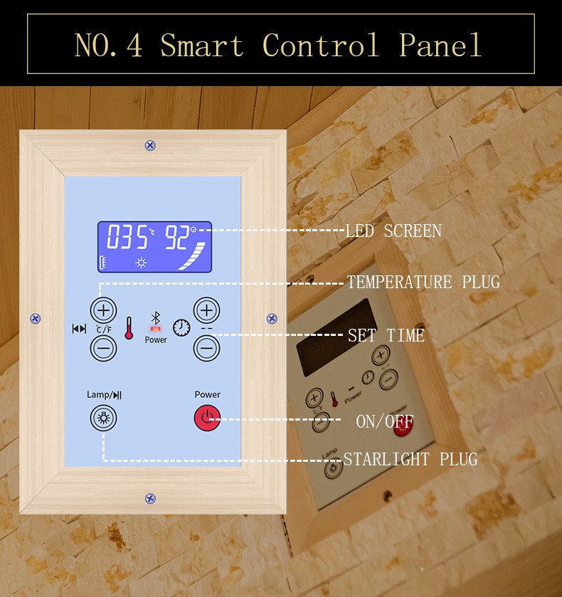 - Temperature sensorem: In muro laterali in sauna aedificatum ut temperaturas mutationes in diversis locis accurate capiat, ad calefactionem uniformem procurandam.