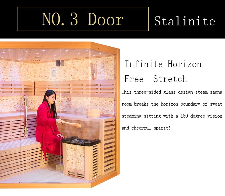Innovative formans specialitatem vitream ianuae structurae Stalinitae trilinei, hoc vitrum speciale subit tractationem temperaturae temperaturae, praestantem calorem resistendi et ictum resistendi liberans. Firmitatem conservat etiam in temperaturis 70℃ intra sauna excedentes, cum ultra-alta diaphaneitate nullaque depravatione optica. Trilineum consilium vitreum 180-gradum patens patens prospectum consequitur, omnino angustum et inclusum sensuum traditionalium saunas frangens. Users contactum visualem cum ambitu externo, in sauna frui possunt, id aptam faciunt ad domum maenianis, villis, et aliis missionibus — permittens te ut scaenam velit aestimare, dum caloris therapiam experitur pro remissius et commoda animi et corporis. Accedit, ratio interne integrata ambiance stellarum sideris effectum per occultos radios ductus in summo et latere parietum denudat effectum. Mollis lux tepidum vaporem complet, oculum lassitudinem efficaciter levans et atmosphaeram immersivam et amoenam fovens.