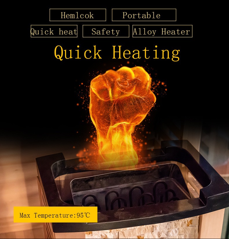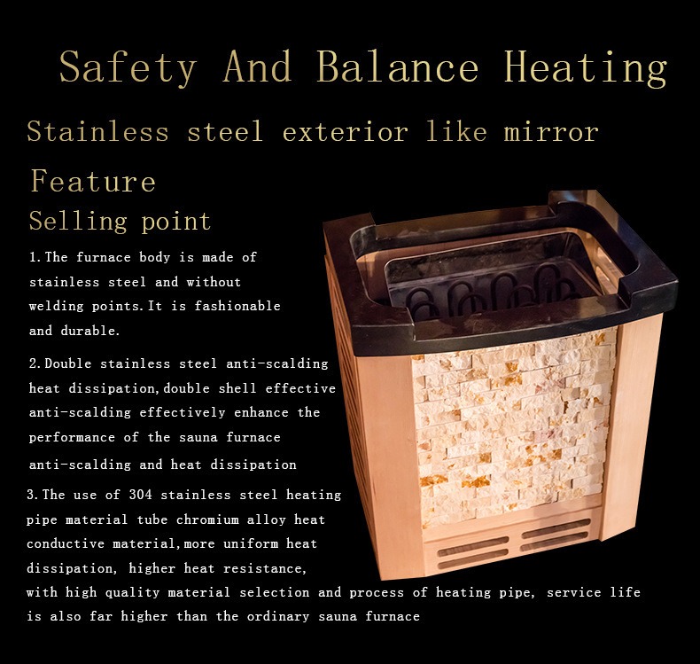 Praeterea sauna calefacientis instructa est cum fabrica praesidio overheati quae automatice potestatibus off cum temperatura limina securitatis excedit, duplicem cautionem efficientiae et securitatis utentis.