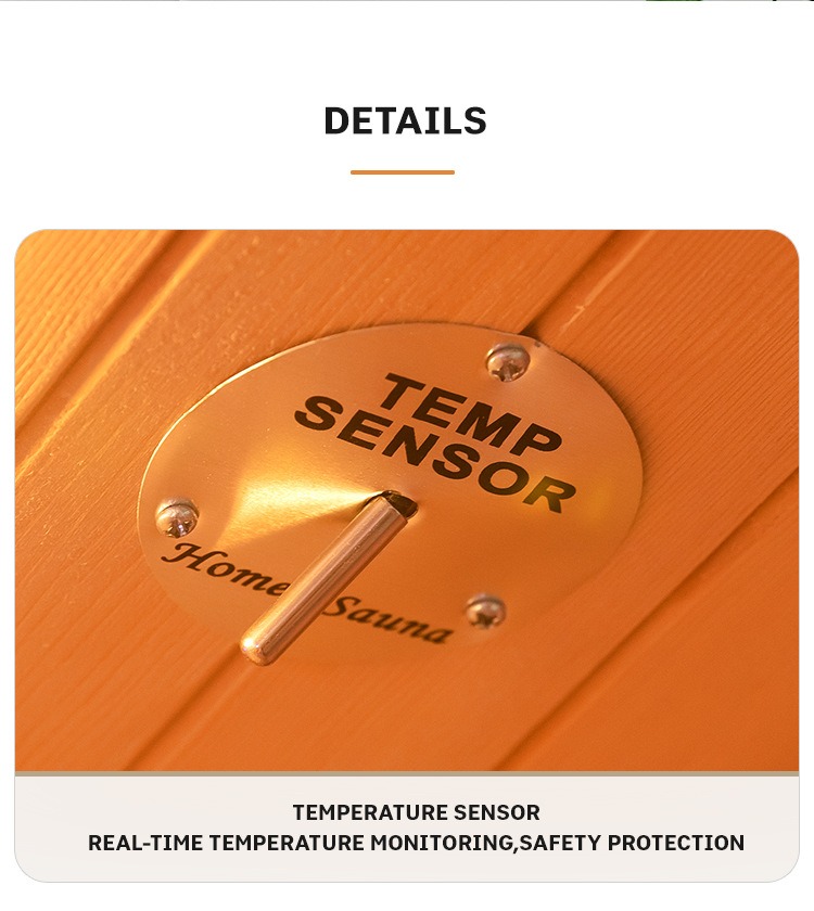 - Real-time Temperature Control System: inaedificatum sensorem temperatum accurate monitores sub tectis temperaturis ut sauna salutem curet.