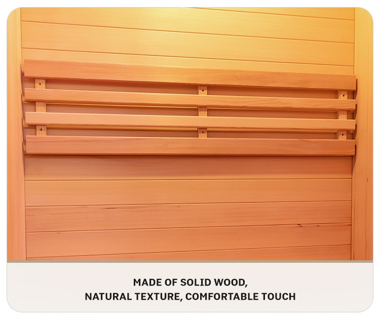 Duae silvae premium Canadiensis, Cicuta et Cedar Rubrum, eliguntur. Lignum est durum et durabile, cum textu naturali perspicuo et uniformiter elegans colore. Naturales proprietates cuiusque ligni sauna cum textura singulari dotant, genesis aesthetici injiciunt naturalem et summum finem in spatium domus tuae. Indoor ultrarubrum sauna pro domo.