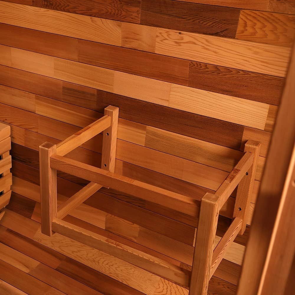 - Sauna scamna: Adopta consilio strato (altitudinum iacuit: 70cm, 45cm, 25cm respective) ad sedentes positiones varias accommodans, solatium et spatium utendo aequans.