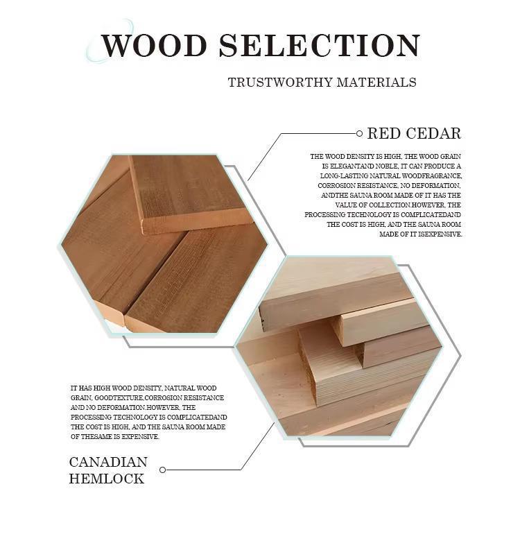 Sauna professionalis sumus cubiculum officinas fabricandi, in R&D positi et productio cubiculi solidi ligni summi finis sauna. Personalized customizationem et officia OEM sustinemus, accommodare possumus productum amplitudinem, materiam, configurationem, etc. secundum mos postulo ut elit solutiones productionis interpositae praebeant.