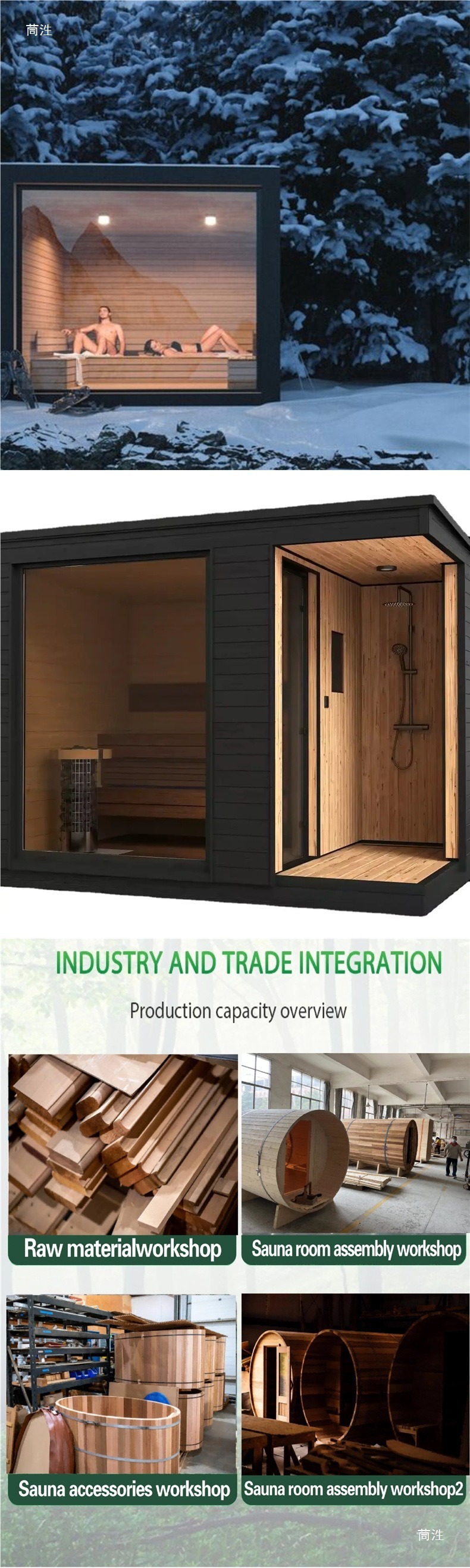 - Processus productionis: productio Standardised opercula " processus materialis rudis - nucleus componentis conventus - inspectionis producti perfecti". Singula qualia sunt in perficientur calefactionis sauna, ratio imbres waterproofing, et testa exterior anti-corrosio coating plures probationes subeunt ut stabilis et certa usui velit.